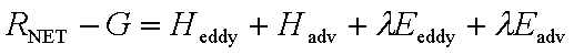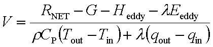 結局、移流フラックスは、 出入りするエネルギー量の差と定義される ![]() ![]() 一方、エネルギー収支式は、以下のようになる。 ![]() 以上を連立して解くと、移流体積V (m3/m2s)を得る ![]() |
