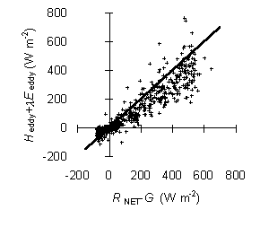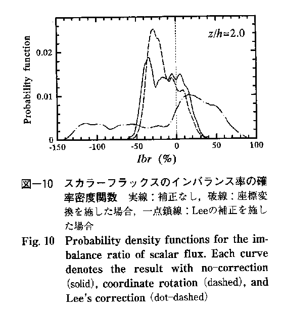 ・吹走距離(フェッチ)の不足 ・放射計とフラックス計のフットプリントの相違 ・測器の精度不足 ・鉛直平均流による輸送量(移流項)の不見積り しかし、おそらく、根本的な原因は、 「乱流の3次元的な組織構造のため、点計測フラックスは 場の平均ではない」(渡辺・神田(2002)) という問題によるだろう |