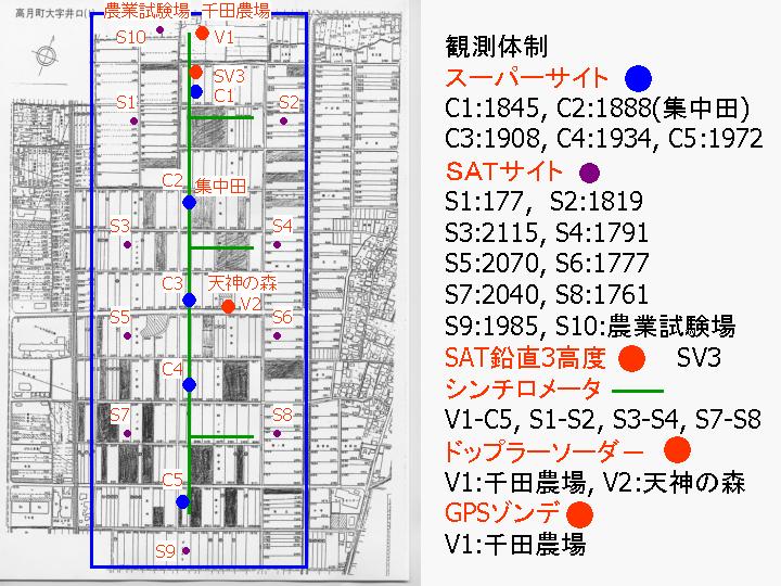 石田さん(弘前大)から拝借の位置図 / 田中賢治さん(京都大)作成の配置図